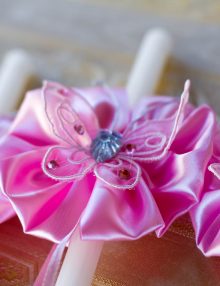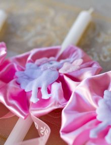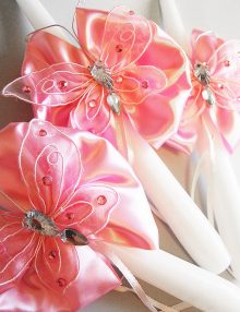Set lumanari cristelnita cu floricele si fluturi roz
