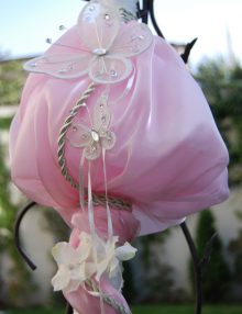 Lumanere botez decorata cu organza roz cu fluturi crem