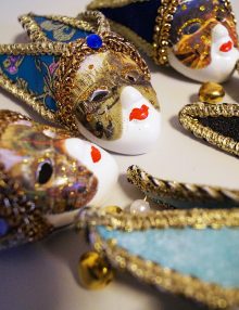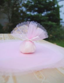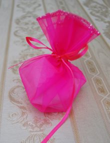 Pahare miri decorate cu fundita si trandafiri din satin mov