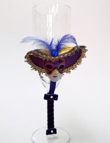 • Pahar miri nunta cu decor lila si masca de carnaval