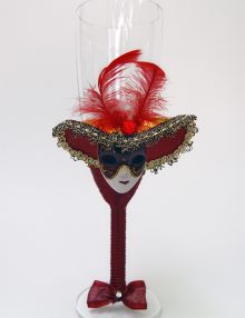 • Pahar miri nunta cu decor grena si masca de carnaval