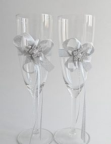 • Pahare pentru miri accesorizate cu panglica si fundita argintie