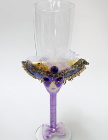 • Pahar miri nunta cu decor lila si masca de carnaval
