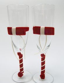 • Pahare pentru miri accesorizate cu trandafiri si fundite din organza rosie