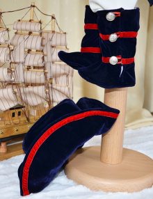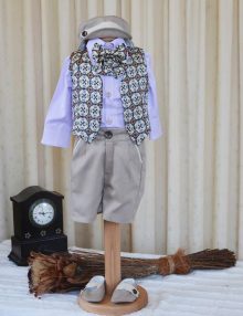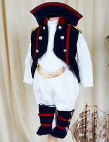 Costumas popular botez baietei, contine cojoc si caciulita, bete, camasa ie autentica din panza topita brodata manual, pantaloni din lana cu broderie manuala. Ia si pantalonul sunt autentice, cusute manual.