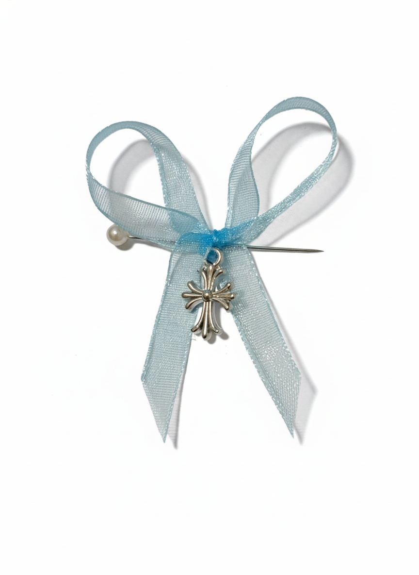 Această cruciuliță delicată, cu o fundiță bleu elegantă și ac cu perlă discret, este simbolul perfect al purității și credinței la botez. Un memento prețios al acestei zile sfinte, ideal pentru a fi oferit ca mărturie.