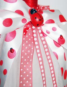 Lumanare botez pentru fetite, cu decor suav din tulle alb, funda dubla din tull, satin roz si un ursulet crem cu palariuta roz, panglica din organza roz inscriptionata cu textul It's a girl, snur crem impletit intr-un leagan pe care se joaca  un al doilea ursulet crem si alte accesorii specifice - barza roz decor.Dimensiune lumanare: 90cm.
