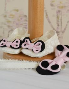 Lumanare botez baieti cu organza crem si funde bleumarin