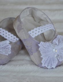 Set botez din dantela fucsia si aplicatii pe tull fin, contine 3 piese.