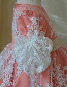 Set botez din dantela fucsia si aplicatii pe tull fin, contine 3 piese.