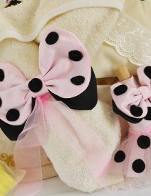 Setul Bebe contine: prosopul mare pentru bebe, panza de mir netivita si fasa. Prosopul si panza de mir pot fi personalizate la cerere cu numele copilului - 80RON