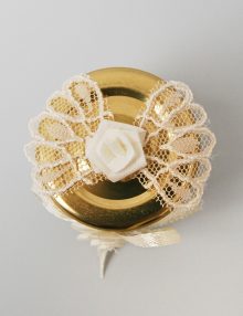 Pentru o nunta cu tematica muzicala, va propunem acest model inspirat de marturie, sub forma unui semn de carte Cheia Sol metalic, cu snur alb. Pretul afisat include si cutia din carton imprimata cu motive muzicale, cu capac transparent si panglica din satin alba. Contra cost, se poate insera un cartonas cu numele mirilor si data evenimentului (0,6RON/buc).