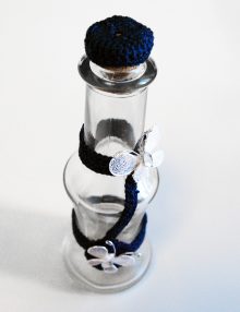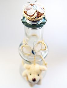 O sticluta pentru uleiul de mir potrivita pentru botezul unui baietel. Sticluta de mir este elegant accesorizata cu o panglica decupata in forme haioase de babetica sau carucior, imprimate cu textul Baby si It's a boy. Dopul poate fi din pluta sau plastic alb spiralat. Sticluta de mir se asorteaza cu unul din modelele de lumanare botez baieti cu decor sau accesorii bleu.