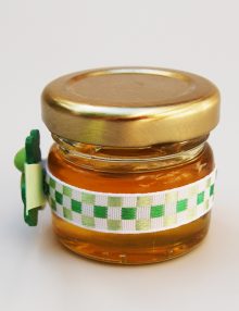Marturie borcanel miere cu decor panglica satin cu floricele si fluturas